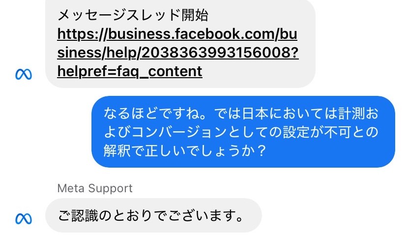 実際に筆者がMetaのヘルプデスクに直接問い合わせたところ、「プライバシー規制により、日本とヨーロッパではこの指標を提供できない」との回答がありました。